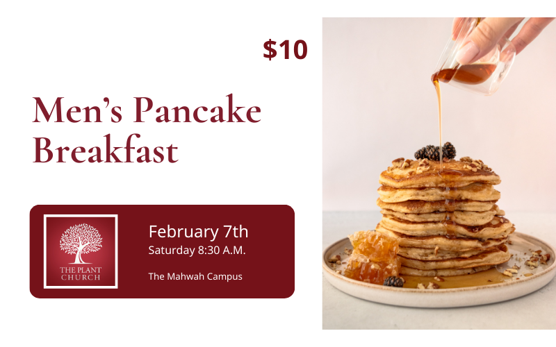 Join the men of the Plant for a pancake breakfast on February 7th! $10/pp and will include breakfast, worship, and a word from a special speaker